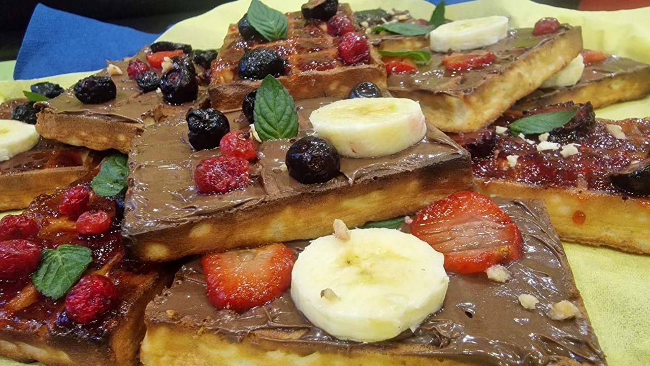 Плато от 12 бр гофрети с шоколад и горски плодове, банан. Сладко с орехи и мента.